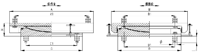 LQZ高承載全封閉球型支座的轉(zhuǎn)角是由中座板的凸球面與下座板上的球面四氟板之間的滑動來實現(xiàn)的。通常由于支座的轉(zhuǎn)動與上部結(jié)構(gòu)的轉(zhuǎn)動不復合,而在中座板和下座板之間形成滑動面。根據(jù)上部結(jié)構(gòu)與支座轉(zhuǎn)動的相對位置,球面轉(zhuǎn)動方向可以與平滑動方向一致或相反。如果兩個轉(zhuǎn)動復合,則無平面滑動。